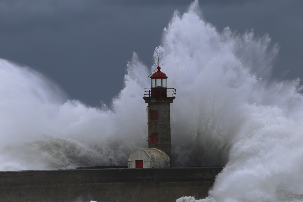 Dalgaların ortasında dimdik ayakta: Portekiz'in Atlantik kıyısındaki bir deniz feneri dalgalara, rüzgara ve hava koşullarına karşı direniyor.