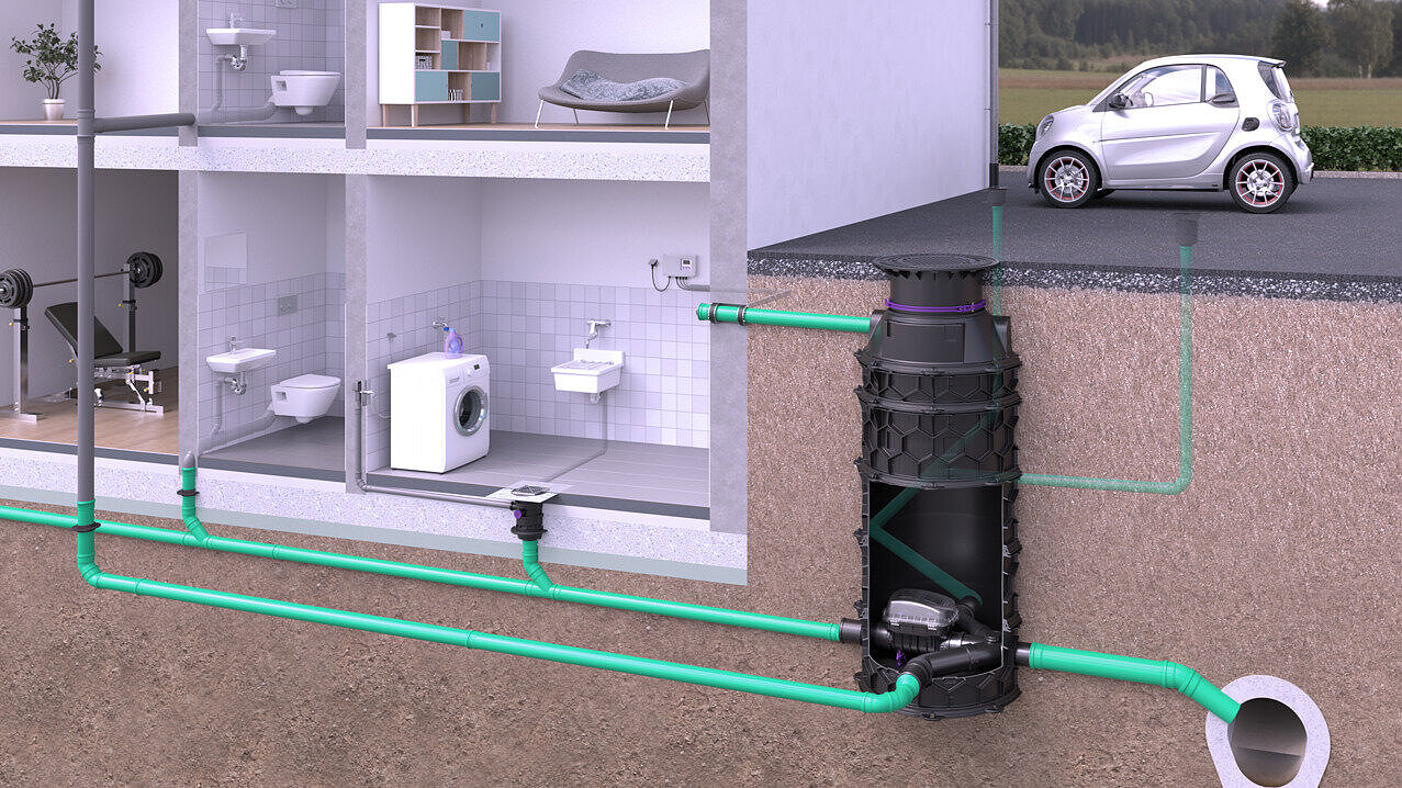 Bir geri akış modül haznesi ile sadece binadaki su merkezi olarak tahliye edilmez. İki giriş sayesinde çatıdaki ve bahçedeki su da güvenilir bir şekilde tahliye edilir.