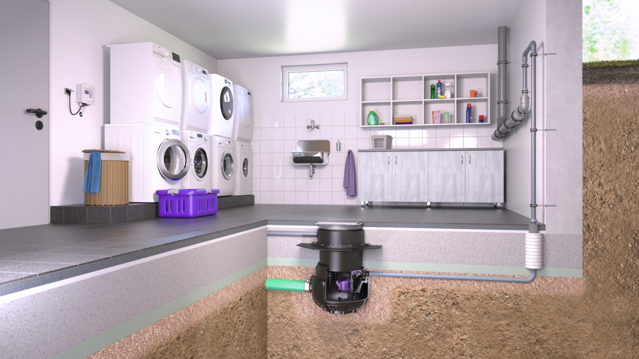 Aqualift S Compact, zemin döşemesine monte edildiğinde neredeyse hiç görünmeyen bir pis su terfi istasyonudur. Kapakta yer alan entegre süzgeç, bodrum katı yüzeyindeki suyu toplar. Minilift S, bir borunun patlaması veya su baskını durumunda bile atık suyu sürekli olarak dışarı pompalayarak bodrum katı odalarının kuru kalmasını sağlar.